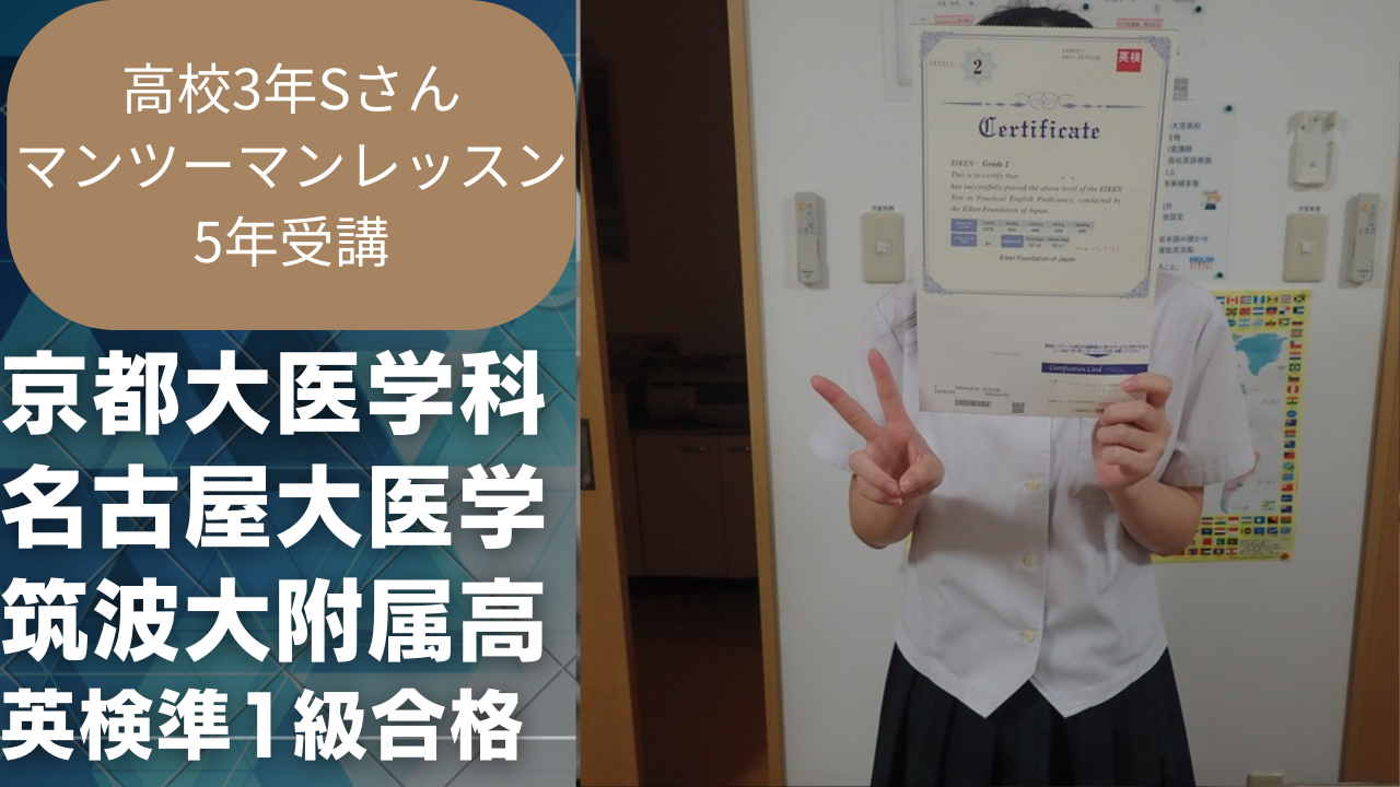 中3女子1年から校内模試満点、校内1位、宮崎県英語模試95点以上継続。